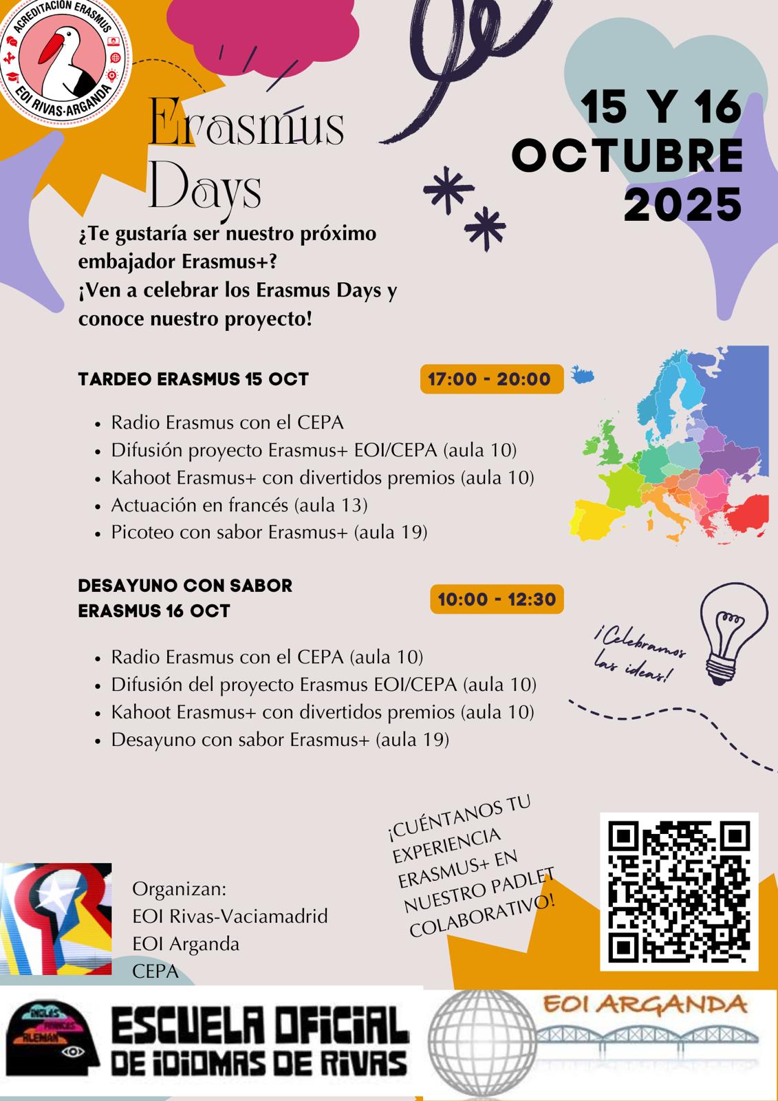 📅 Miércoles, 15 de octubre – 17:30h📍 CEPA Rivas-Vaciamadrid ¡Celebramos Europa en nuestro centro! 🌍✨Ven...